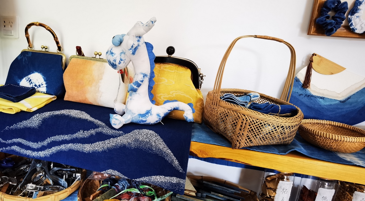 在云南普洱那柯里古镇上,黄琳开设的植物染工作室里的部分文创产品。科技日报记者 赵汉斌 摄
