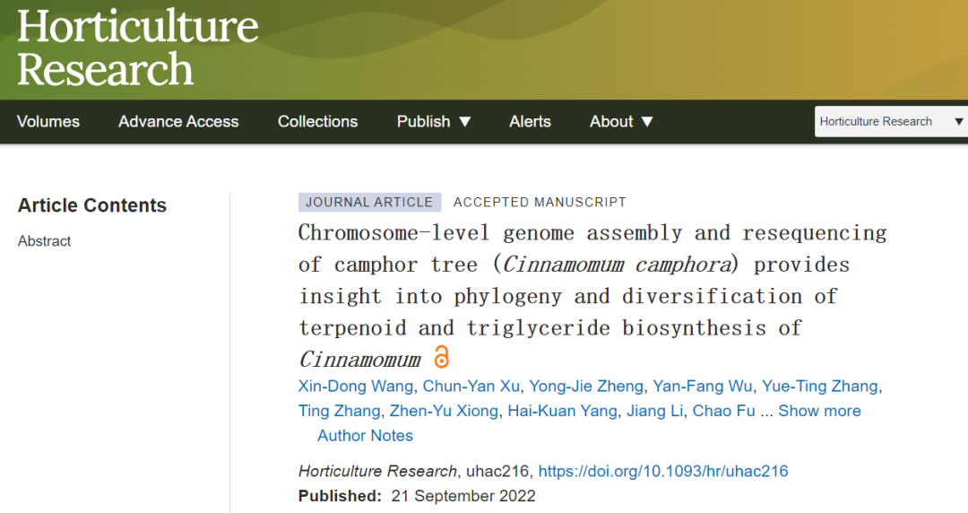 近日,科技日报记者从江西省林业科学院樟树创新团队获悉,该团队研究论文“通过染色体水平樟树基因组组装和重测序,提供樟树系统发育、萜类和甘油三酯生物合成多样性新见解”在国际农林科学期刊《园艺研究》在线发表。