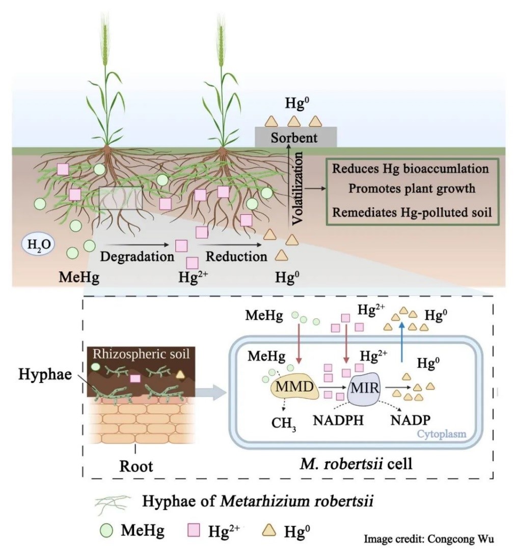 15日,《美国科学院院刊》(PNAS)在线发表了浙江大学生命科学学院方卫国教授团队的最新研究成果。该团队从绿僵菌内挖掘到了基因MMD和MIR,二者联手能将土壤和水体中剧毒的甲基汞和二价汞一步步转化为低毒易挥发的零价汞。该期刊评价认为,绿僵菌抗汞能力的遗传和生化机制的揭示,有望为汞污染的治理提供更有效、更安全的生物修复方法。