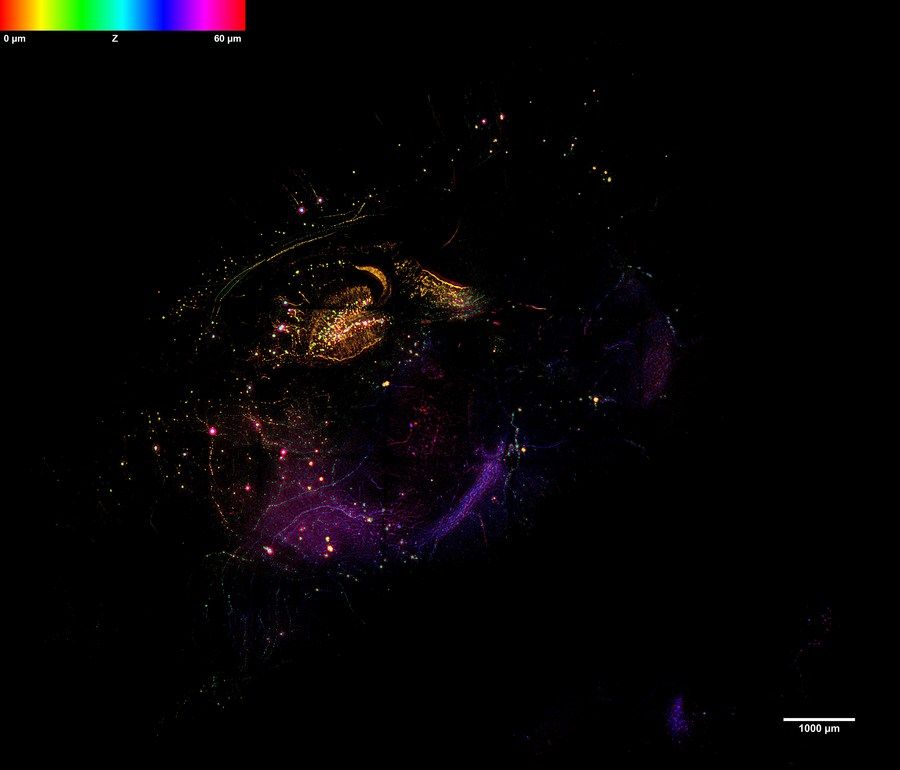 这是清华大学科学家利用多维多尺度计算摄像仪器拍摄的小鼠神经图片(2018年3月摄)。新华社发(清华大学成像与智能技术实验室供图)