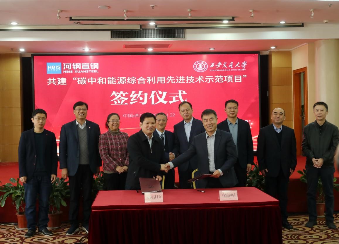11月22日,河北钢铁集团宣钢公司与西安交通大学共建碳中和能源综合利用先进技术示范项目在西安签约。