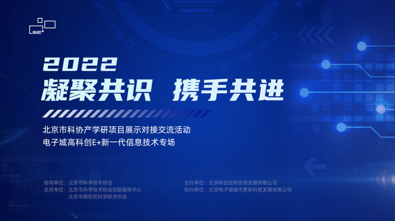 11月30日,北京市科协产学研项目展示对接交流活动电子城高科创E+新一代信息技术专场成功举办。活动由北京科创空间投资发展有限公司(以下简称电子城高科创E+)主办,北京电子城城市更新科技发展有限公司协办,得到北京市科学技术协会指导,北京市科学技术协会创新服务中心、北京市朝阳区科学技术协会大力支持。