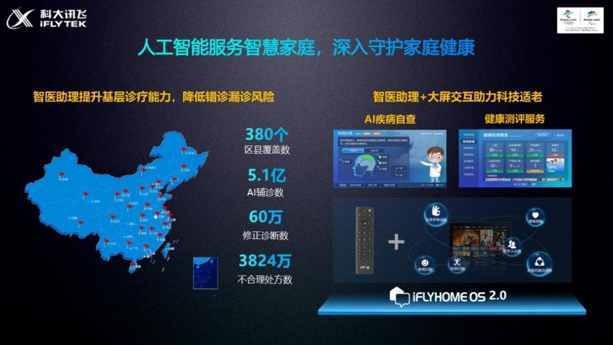 2017年,智医助理以456分的成绩在全球首次通过了国家临床执业医师笔试测试,超过了96.3%的人类考生,首次让机器具备了全科医生的潜质。刘庆峰表示,目前科大讯飞也正在跟中国移动合作,将这些应用与家庭的电视大屏交互结合起来,使得老人在家里用遥控器就可以进行AI的疾病自查、健康测评服务。