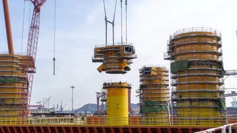 “海油观澜号”平台由3个边立柱和1个中心立柱组成,边长超80米,高约35米,重量近4000吨,风机将安装在中心立柱上。项目投产后,风机所发电力通过动态海缆接入海上油田群电网用于油气生产,年发电量可达2200万千瓦时,可节约燃料气773万立方米,减少二氧化碳排放2.2万吨。据项目执行负责人康思伟介绍,未来中国海油数百座海上设施周边都将探索应用这种绿色供能方式,着力打造“零碳”油气产业链,为实现“双碳”目标作出积极贡献。