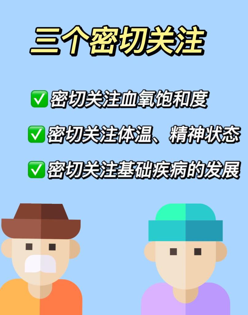 此外,武汉市肺科医院主任医师陈志飞等一线医生提示,针对新冠病毒老年感染者,还要注意“三个密切关注”,即密切关注血氧饱和度,密切关注体温、精神状态,密切关注基础疾病的发展。在这些情况都稳定的情况下,可以居家线上求医问药,在医生的指导下,及时对症治疗。