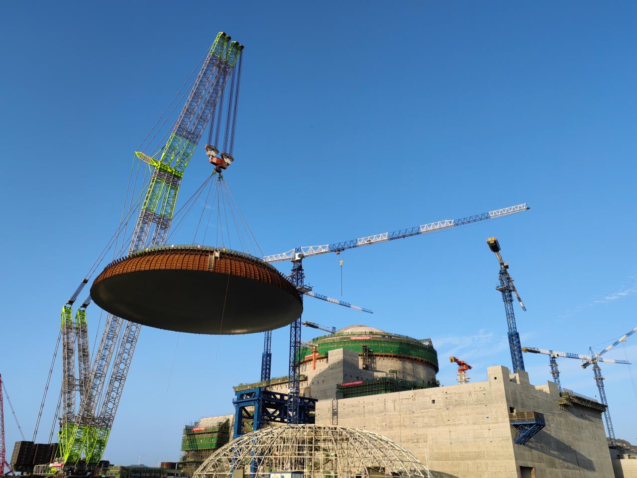 2月17日,我国自主三代核电华龙一号批量化建设首台机组——中核集团漳州核电1号机组外穹顶成功吊装,标志着该机组主体结构工程施工完成,为后续安装冷试及并网发电奠定坚实基础,华龙一号批量化建设迈出坚实步伐。