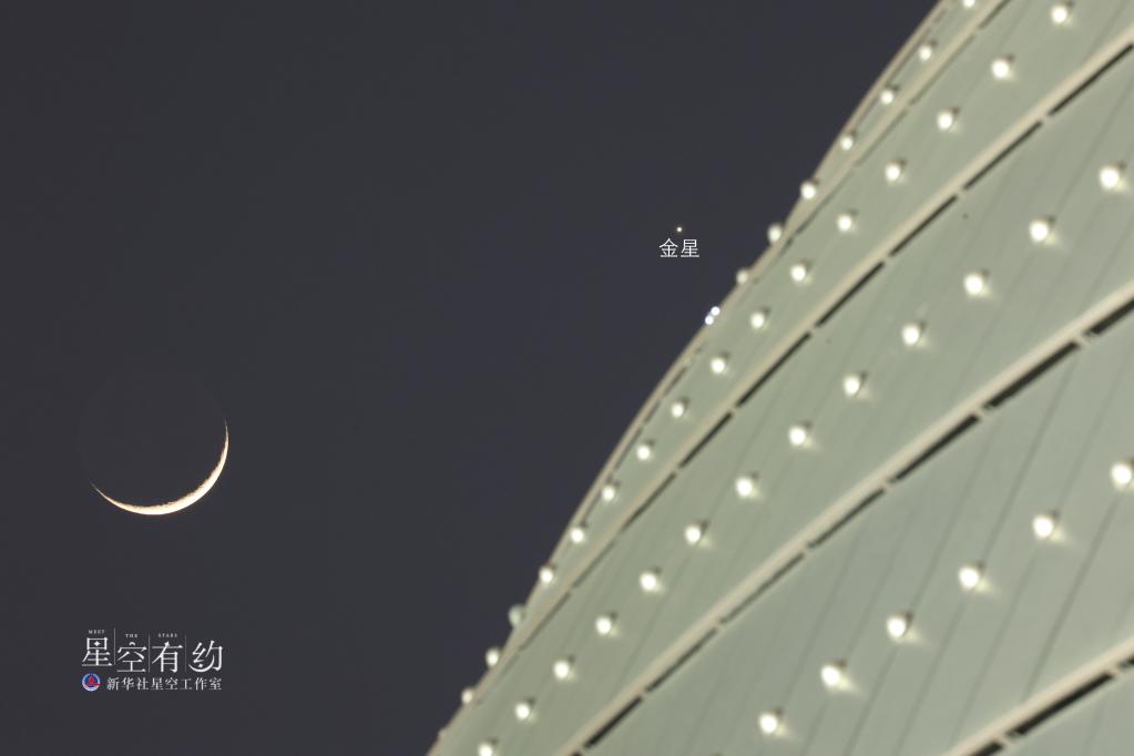 这是北京市天文摄影爱好者王俊峰2023年2月22日在北京市西城区拍摄的金星伴月牙。(本人供图)