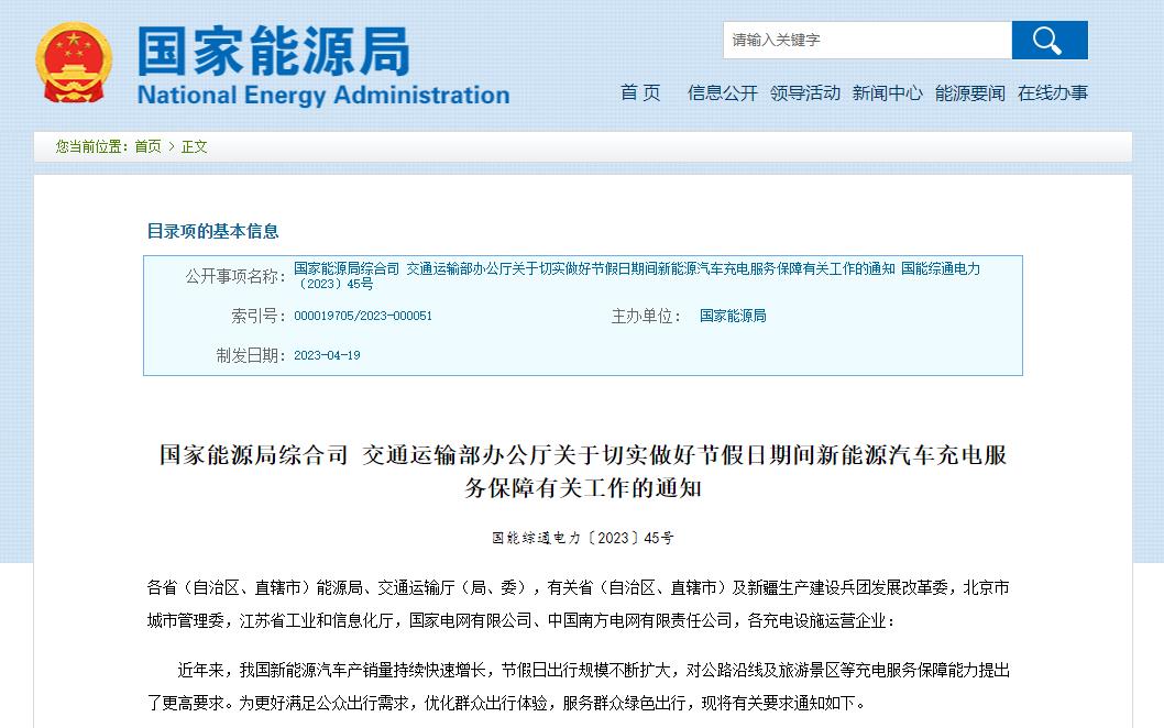 近日,国家能源局、交通运输部发布《关于切实做好节假日期间新能源汽车充电服务保障有关工作的通知》。主要内容如下: