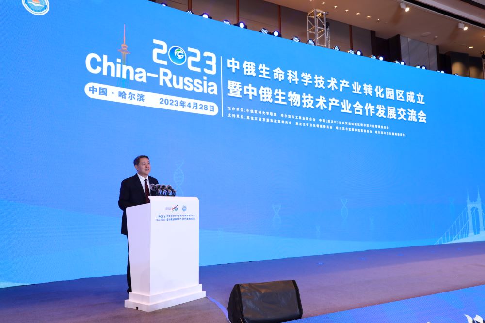 4月28日,中俄生命科学技术产业转化园区正式成立落户哈尔滨新区。会上,哈尔滨市委副书记、市长张起翔为“中俄生命科学技术产业转化园区”授牌。中俄医科大学联盟、中国(黑龙江)自由贸易试验区哈尔滨片区管委会、哈尔滨市工商企业生物经济产业商会签署了战略合作协议。