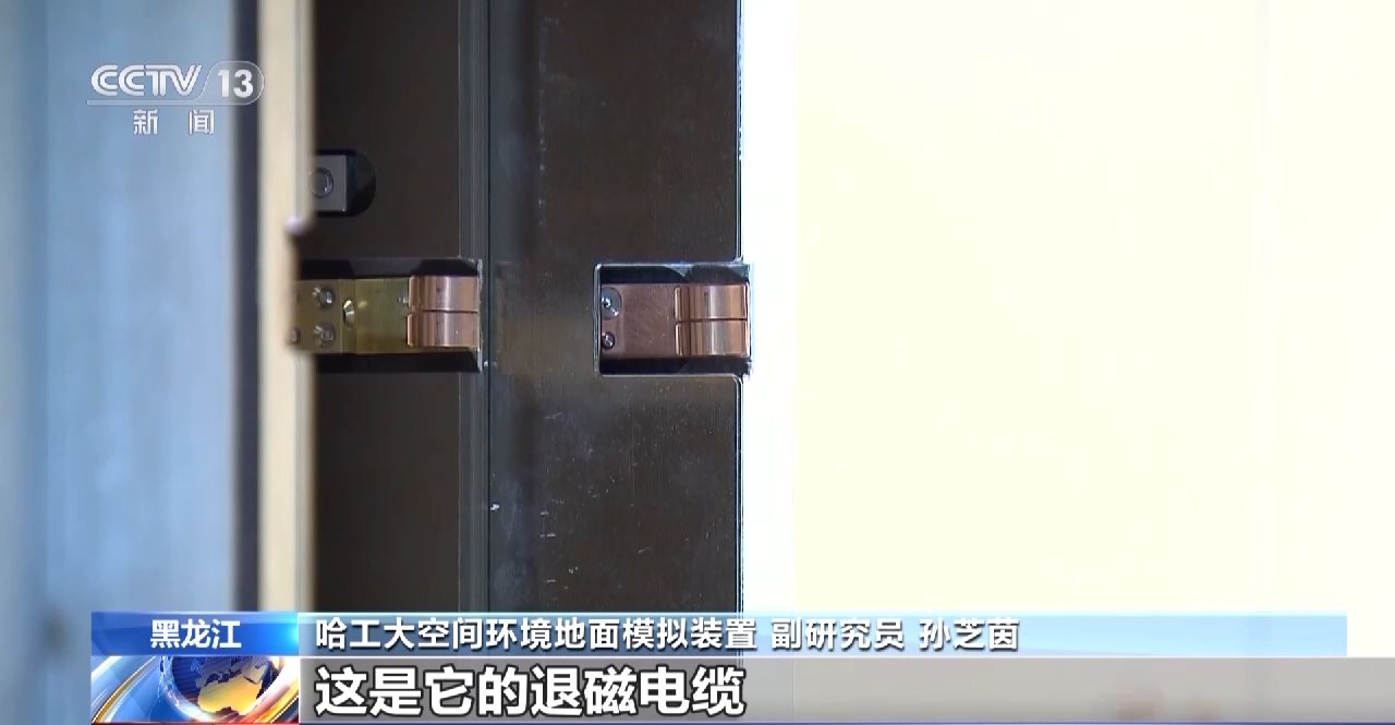 哈工大空间环境地面模拟装置 副研究员 孙芝茵:你看这是最关键的内层磁屏蔽,这是它的退磁电缆,当门关闭以后,我们通过控制退磁电缆里面的电流,可以降低内部空间的磁场。这是我们经过五年研发后所获得的最关键的核心技术。