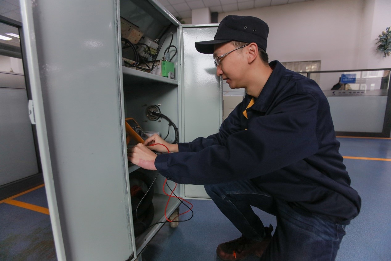 接下来是寻找零件,大小零件全都是从闲置不用的设备中淘到的。一台相当于工控用的电脑,加上七八个模块、转换开关、空气开关等20余个零件,组成了1.5米高,长0.4米、宽0.3米的测试推车。经过一个月的设计和两个月的调试,联网测试推车设计成功。通过测试,测试推车显示数据与列车自带显示屏完全一致,并且设计与成品一致,十分精准。