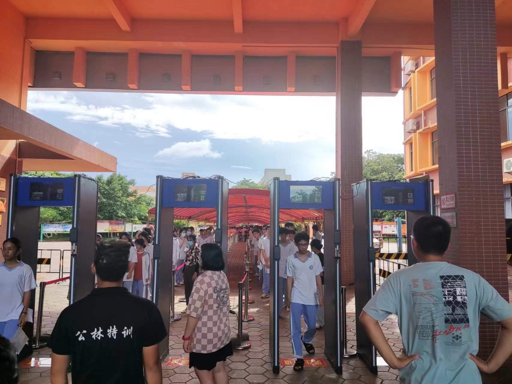 海南澄迈某考点师生正进行智能安检门模拟压力测试。科技日报记者 王祝华 摄