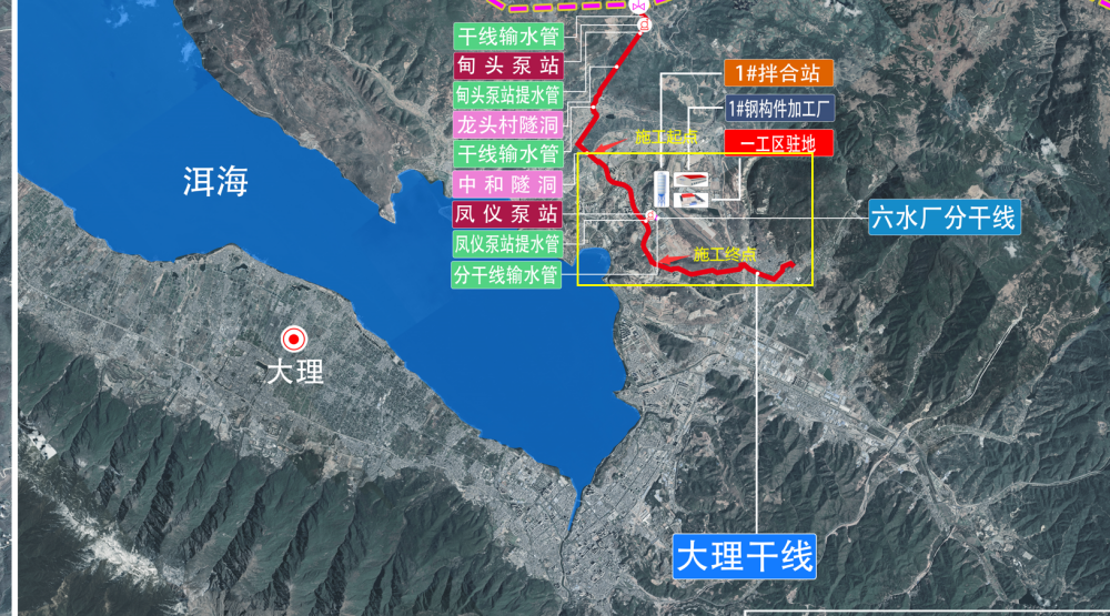 滇中引水二期配套工程大理施工段大理干线览川路段破土动工-施工区域平面图。