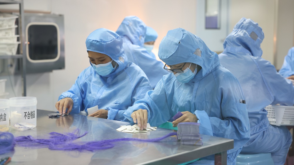 海迪科的生产车间,工人们正在制作医用手术缝合线。侯振鹏 摄