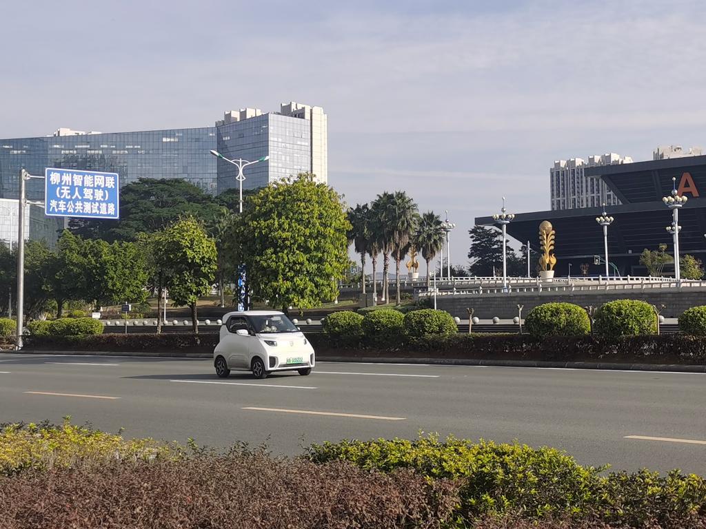 图为一辆装有智能网联设备的汽车在广西柳州测试道路上行驶。(李小林 摄)
