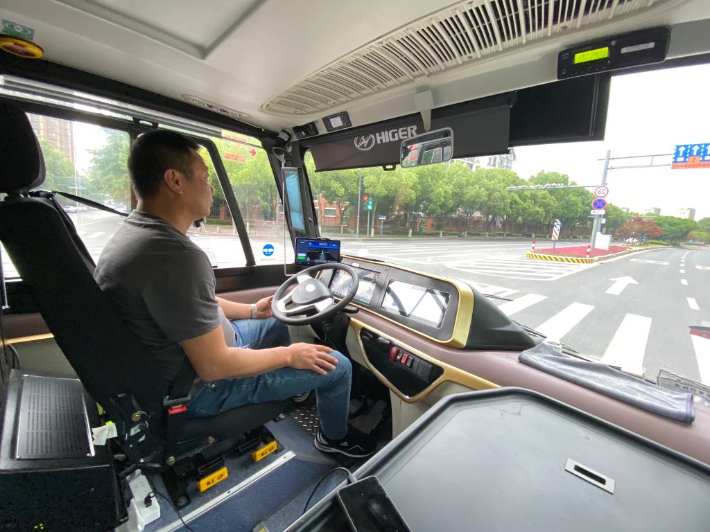 德清县位于浙江北部,曾举办首届联合国世界地理信息大会。记者在该县塔山森林公园公交站登上一辆纯电动公交车,只见司机将车辆缓缓驶离车站后,开启自动驾驶模式,随后双手离开方向盘。车辆根据路况,按照路面标线、信号灯等自动行驶,转弯遇到人行道,会主动停车让行。