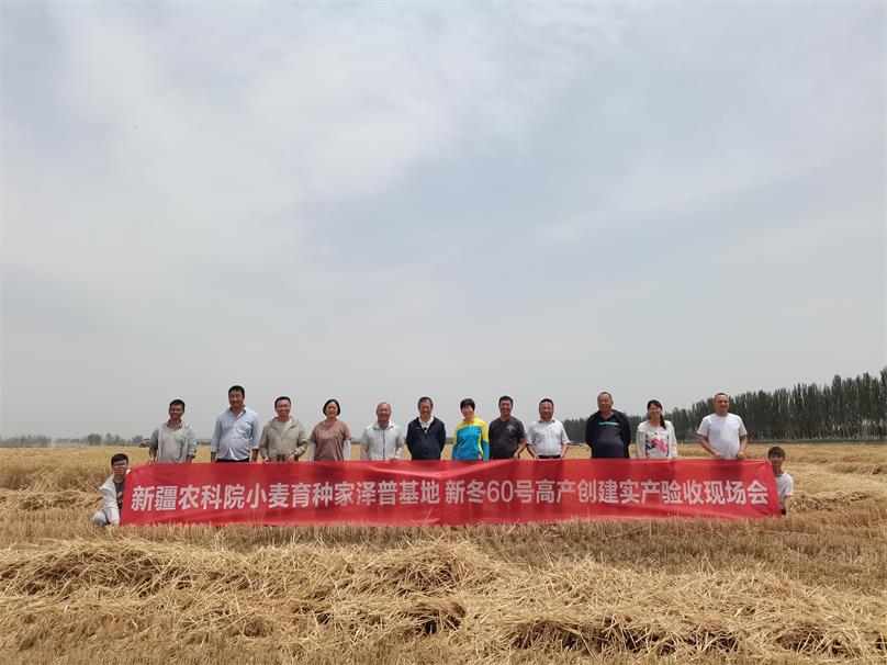6月26日,在新疆维吾尔自治区喀什地区泽普县,来自科研院校、农机推广中心、种子管理部门共同组成的测产专家组,对在新疆农科院小麦育种家泽普基地建立的50亩“新冬60号”小麦高产田进行了测产。