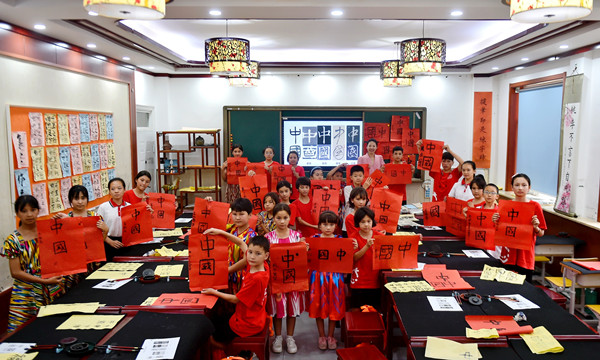 7月24日,学生们在天通苑小学学习,同写中国字。王耀武 摄