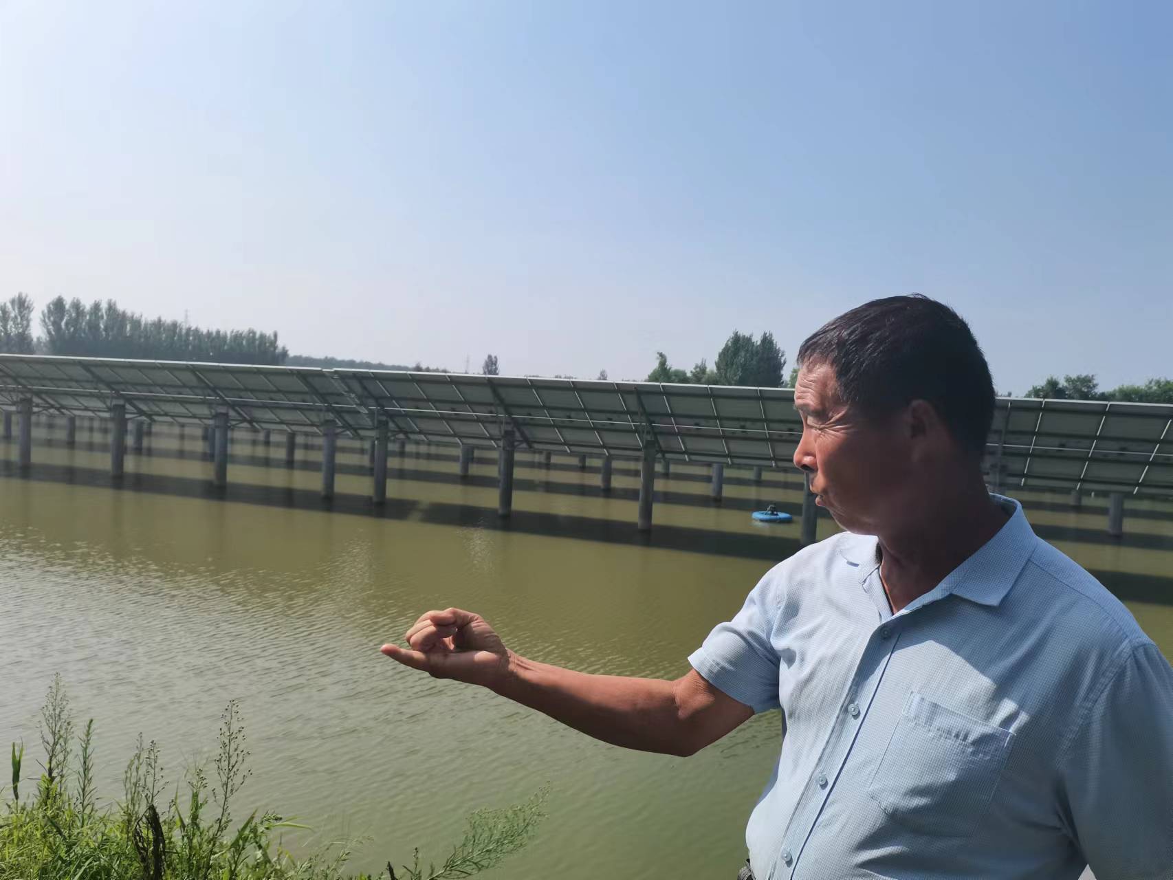 淄博市高青县,养殖大户李华亭正掰着指头向记者计算“渔光互补”带来的好处。科技日报记者 王延斌 摄
