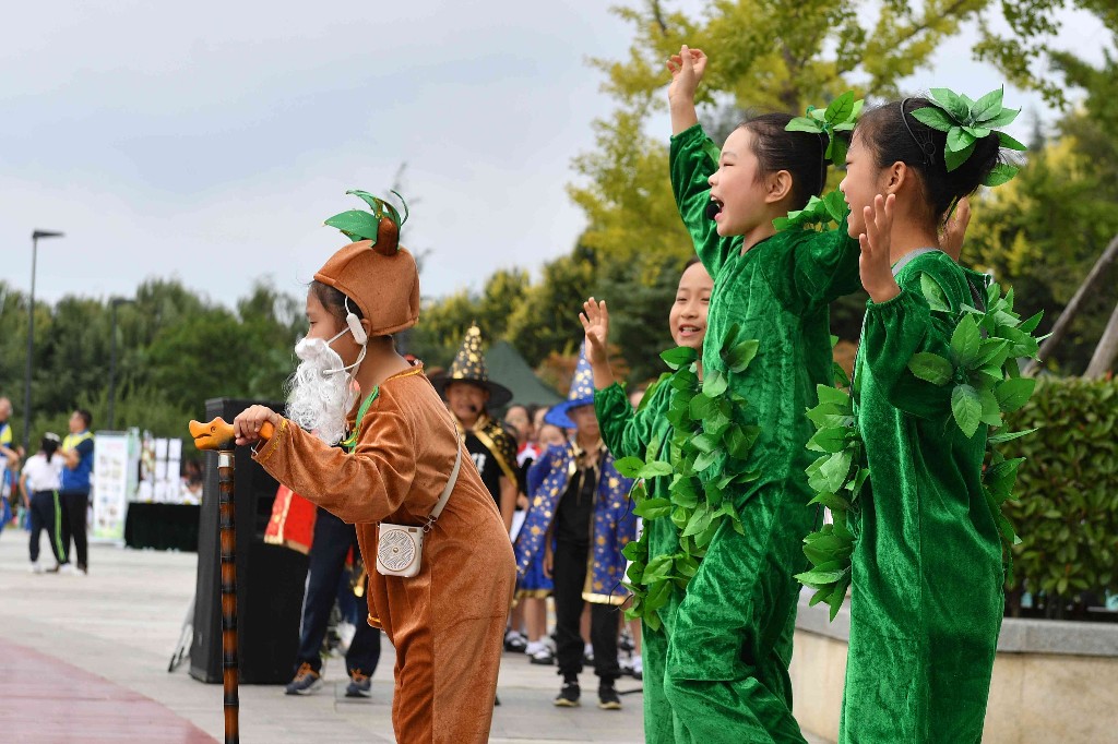 9月21日,在青岛市城阳区举行的“全国科普日”主场活动上,天泰城学校的学生在表演生态科普剧《森林爷爷》。王海滨 摄