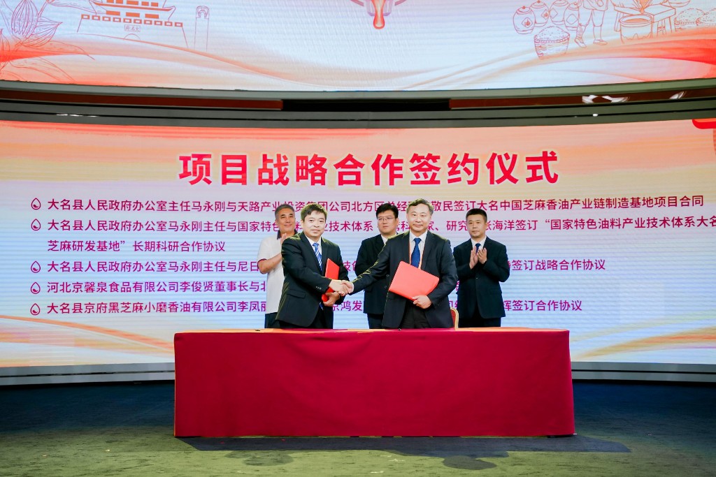 随后,在签约仪式上,大名县人民政府分别与天路产业投资集团公司、尼日利亚现代农业科技创新协会签订合作协议,就建立“国家特色油料产业技术体系大名芝麻研发基地”签订长期科研合作协议。