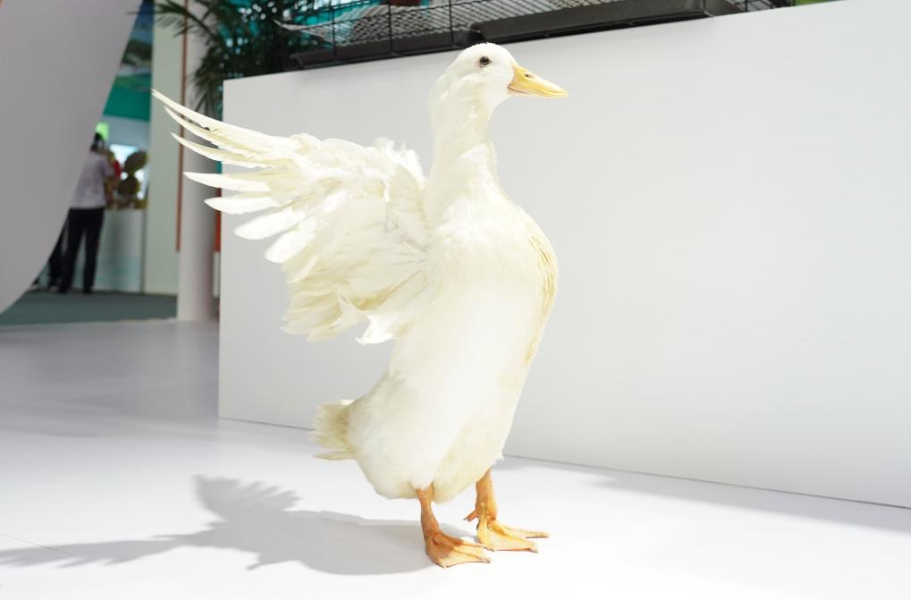 9月11日在第三十届中国北京种业大会种业振兴成果展现场拍摄的北京鸭。(新华每日电讯记者 任超 摄)