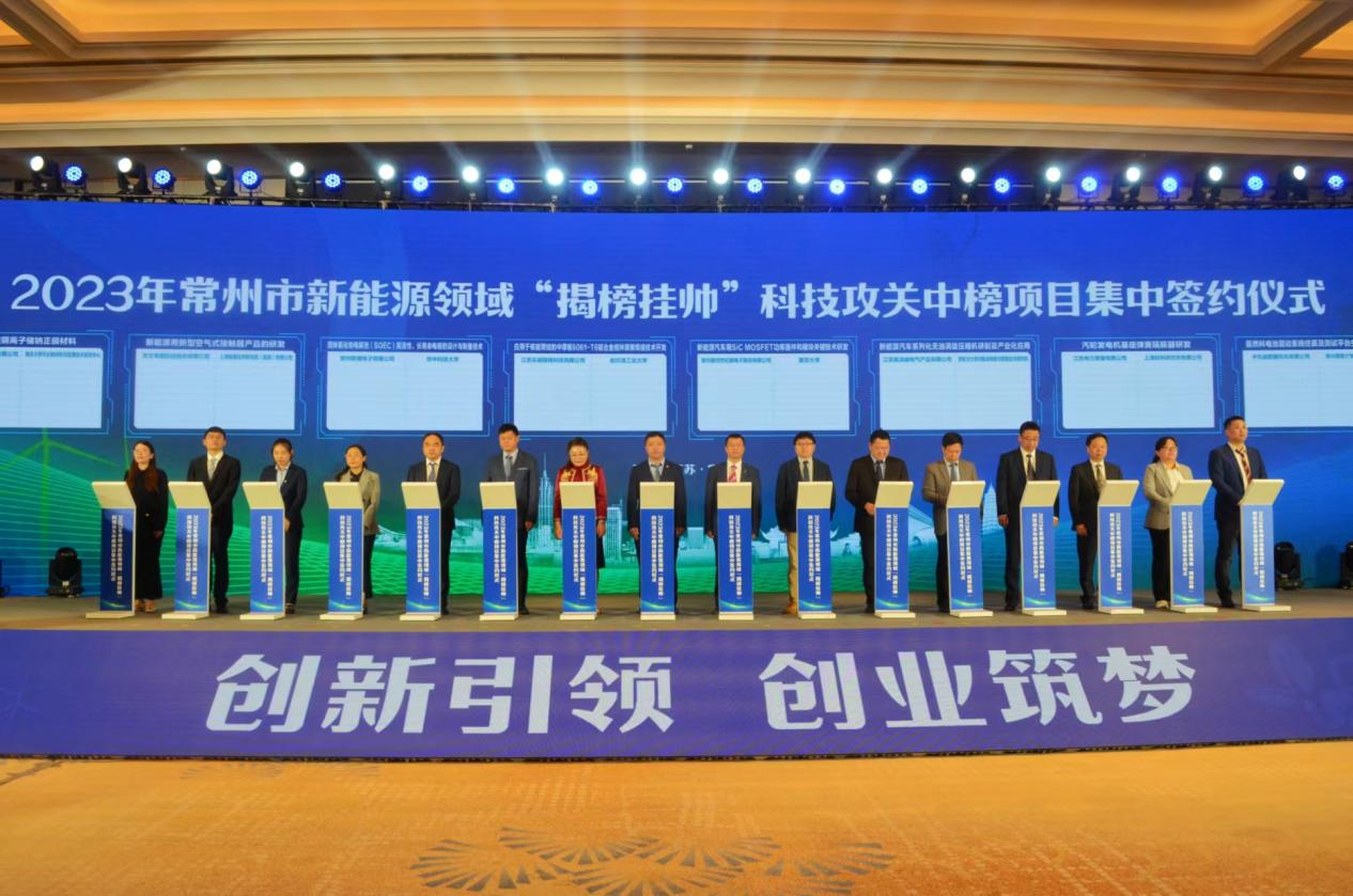 25日,第十二届中国创新创业大赛新能源、新能源汽车、节能环保全国赛在江苏常州开幕。开幕式上,2023年常州新能源领域“揭榜挂帅”科技攻关部分中榜项目集中签约,常州市独角兽科创学院揭牌成立。