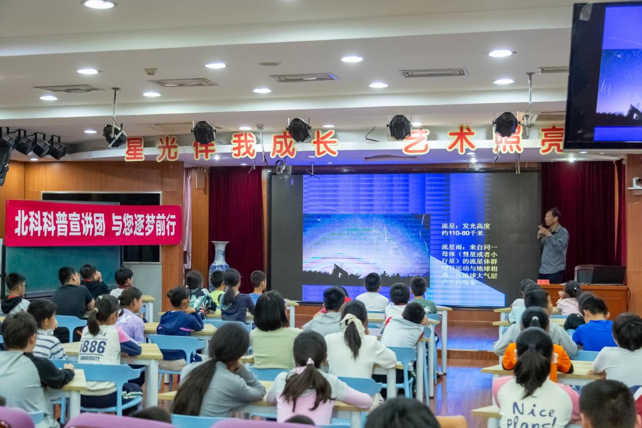 宣讲团成员为北京市海淀区星火小学学生宣讲《天文漫谈》。受访者供图