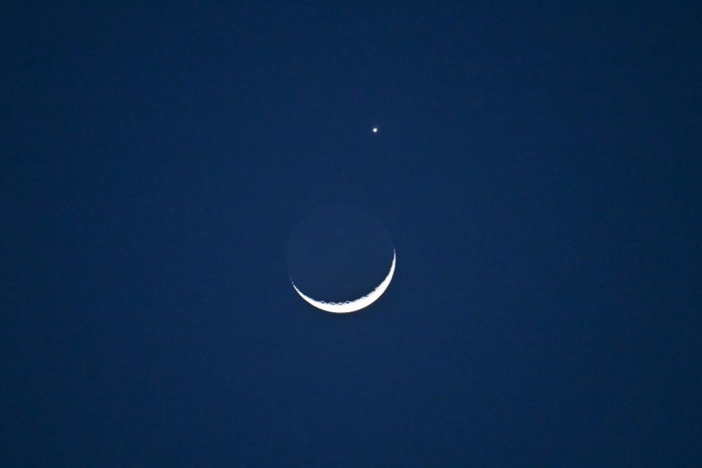 这是3月24日在北京拍摄的月掩金星天象。新华社记者李鑫摄