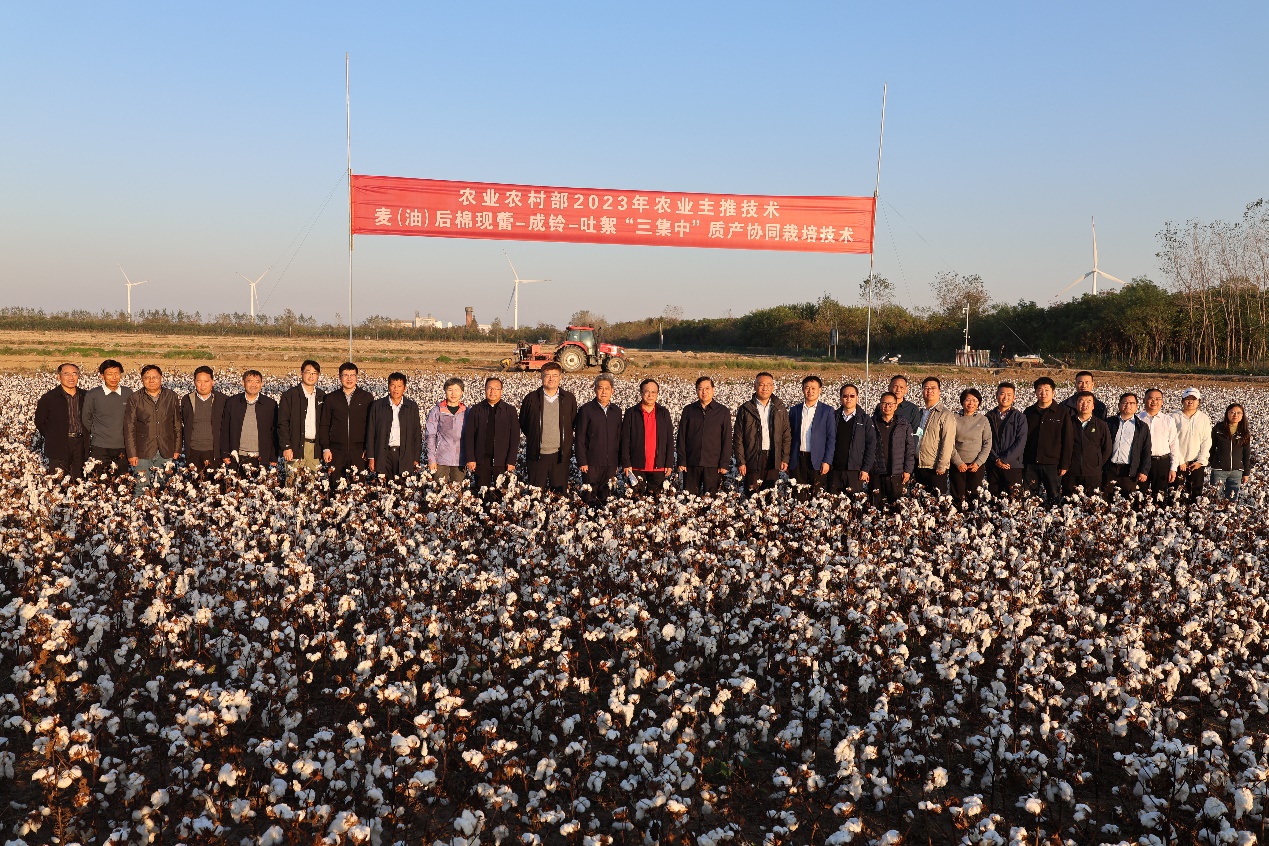 农业农村部2023年农业主推技术“麦(油)后棉集中成铃—吐絮质产协同栽培技术”应用观摩研讨会,近日在江苏省盐城市召开。与会人员还现场观摩了兴化市安丰镇小麦后棉花、盐城市大丰区稻麦原种场盐碱地大麦与油菜后棉花技术应用现场,听取了该主推技术应用效果,同时专家组对示范地进行现场估产,兴化和大丰的八五折籽棉产量分别达到5367.8公斤/公顷、5150.7公斤/公顷。
