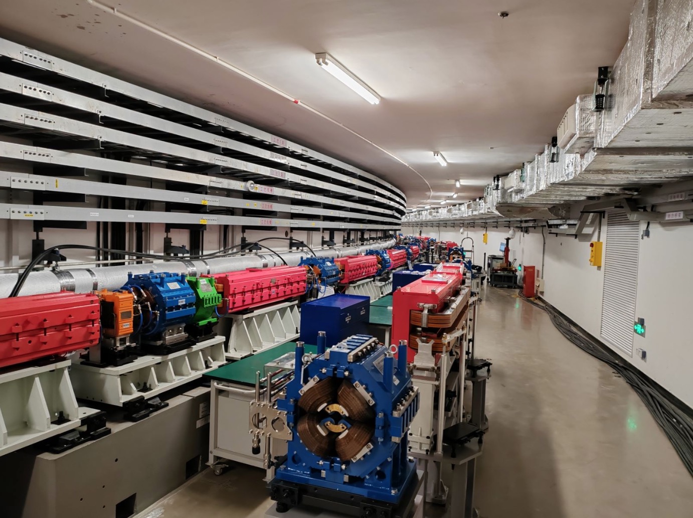 作为HEPS第二个出束的加速器,增强器全环周长约454米,由四个超周期对称结构组成。“HEPS增强器是储存环的满能量注入器,有注入、升能、回注、累积和引出等工作阶段,主要负责将电子束流从500MeV(百万电子伏特)加速到6GeV,为储存环提供高品质的电子束。”中国科学院高能物理研究所研究员、HEPS调束负责人焦毅说。