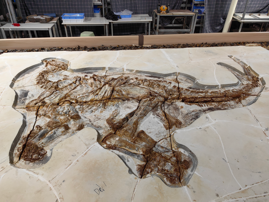 在完成恐龙化石前期主体修复基础上,研究人员后期将进行化石周边修复、科学研究和模型及复原图制作等工作。