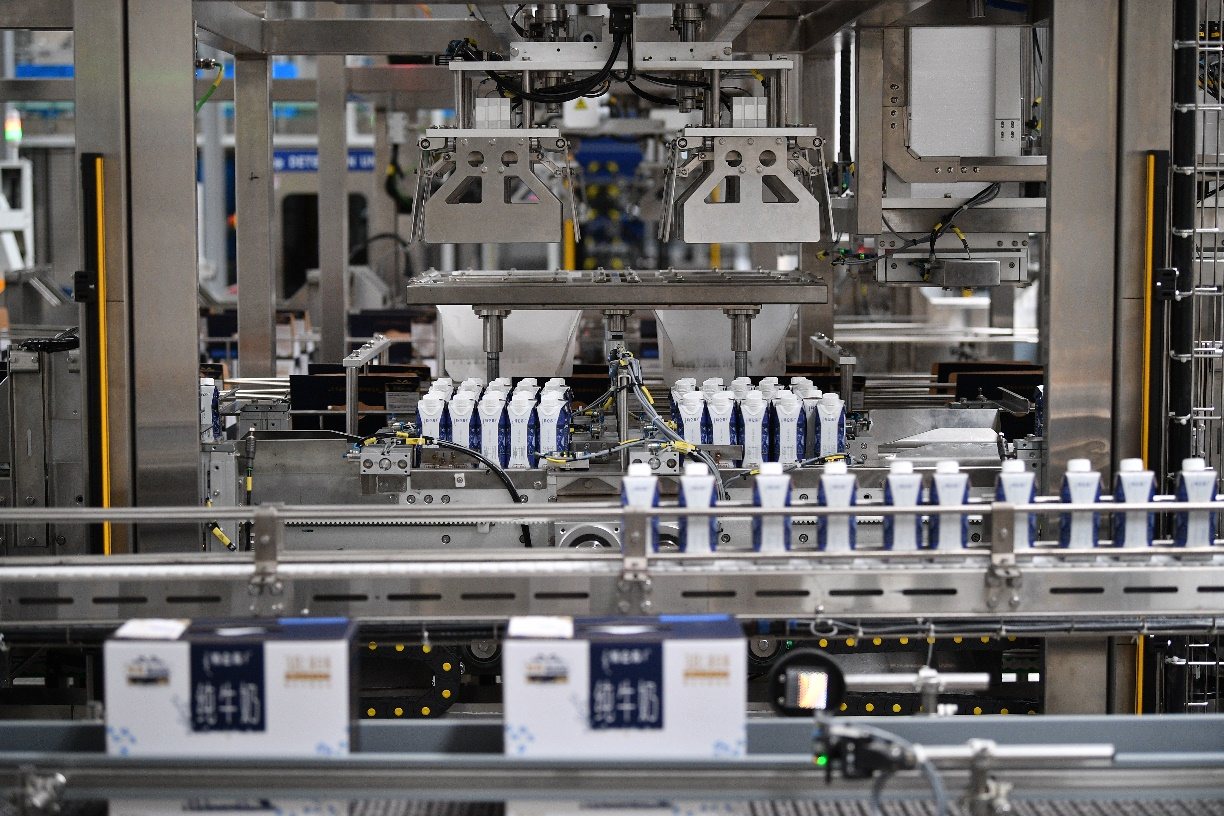 今年5月落成投产的蒙牛宁夏工厂,是全球首座乳业全数智化工厂,也是一座打造5G+立体化、效益化、高效化、智能化一体的“绿色智慧”工厂。该工厂实现了“三个一百”:即100名员工、创造100万吨年产能,实现100亿元年产值。