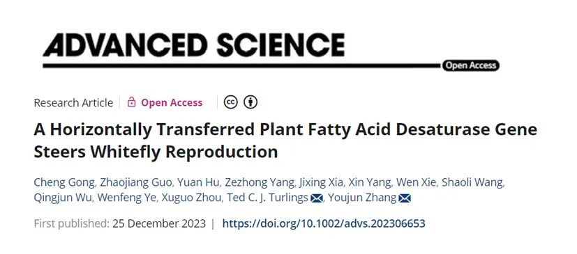 烟粉虱是世界粮农组织认定的世界第二大害虫,也是至今为止唯一被冠以“超级害虫”的农业害虫。26日,记者从中国农业科学院蔬菜花卉研究所获悉,该所蔬菜虫害防控创新团队在国际上首次报道了烟粉虱可以通过“授人以渔”的方式“学习”植物的多不饱和脂肪酸合成技术,并将其用于提高自身生殖能力,减少对寄主植物的营养依赖性。该研究25日在线刊发在国际著名综合性学术期刊《先进科学》上。