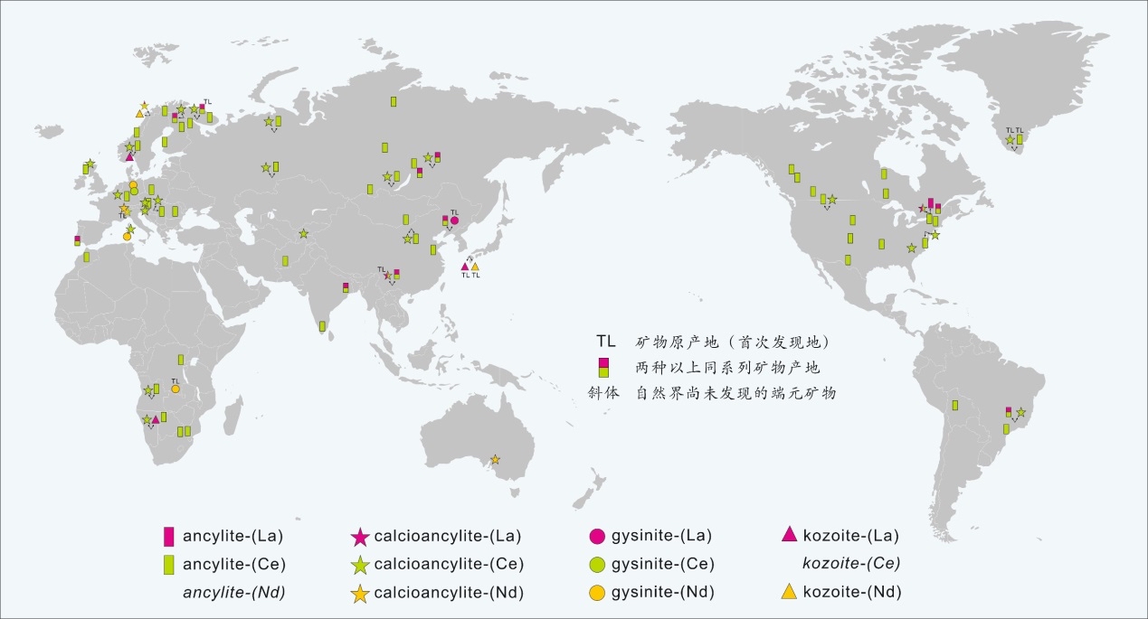 碳锶铈矿超族矿物全球分布图