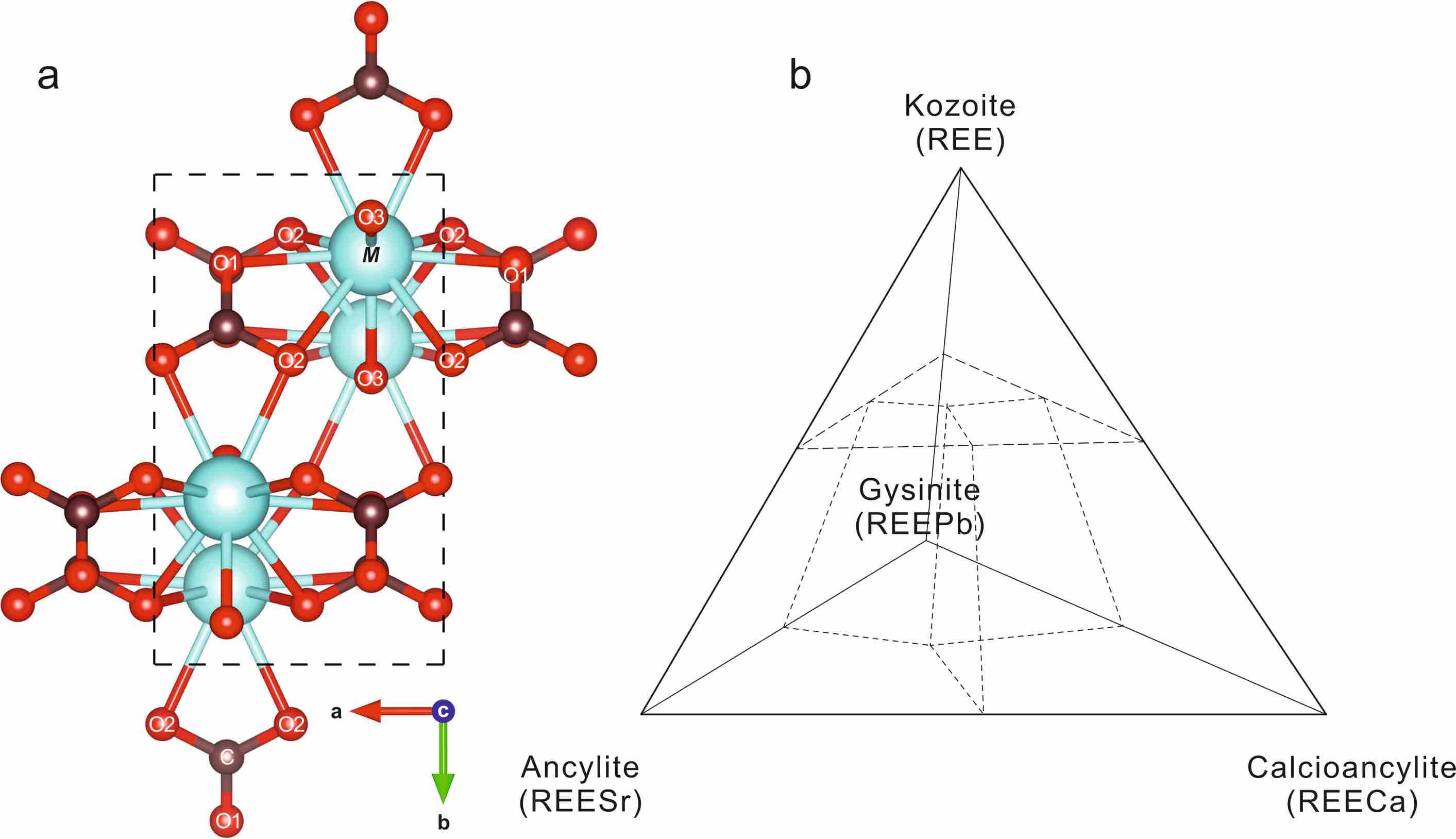 碳锶铈矿超族(a)晶体结构模型图, (b)分类边界相图