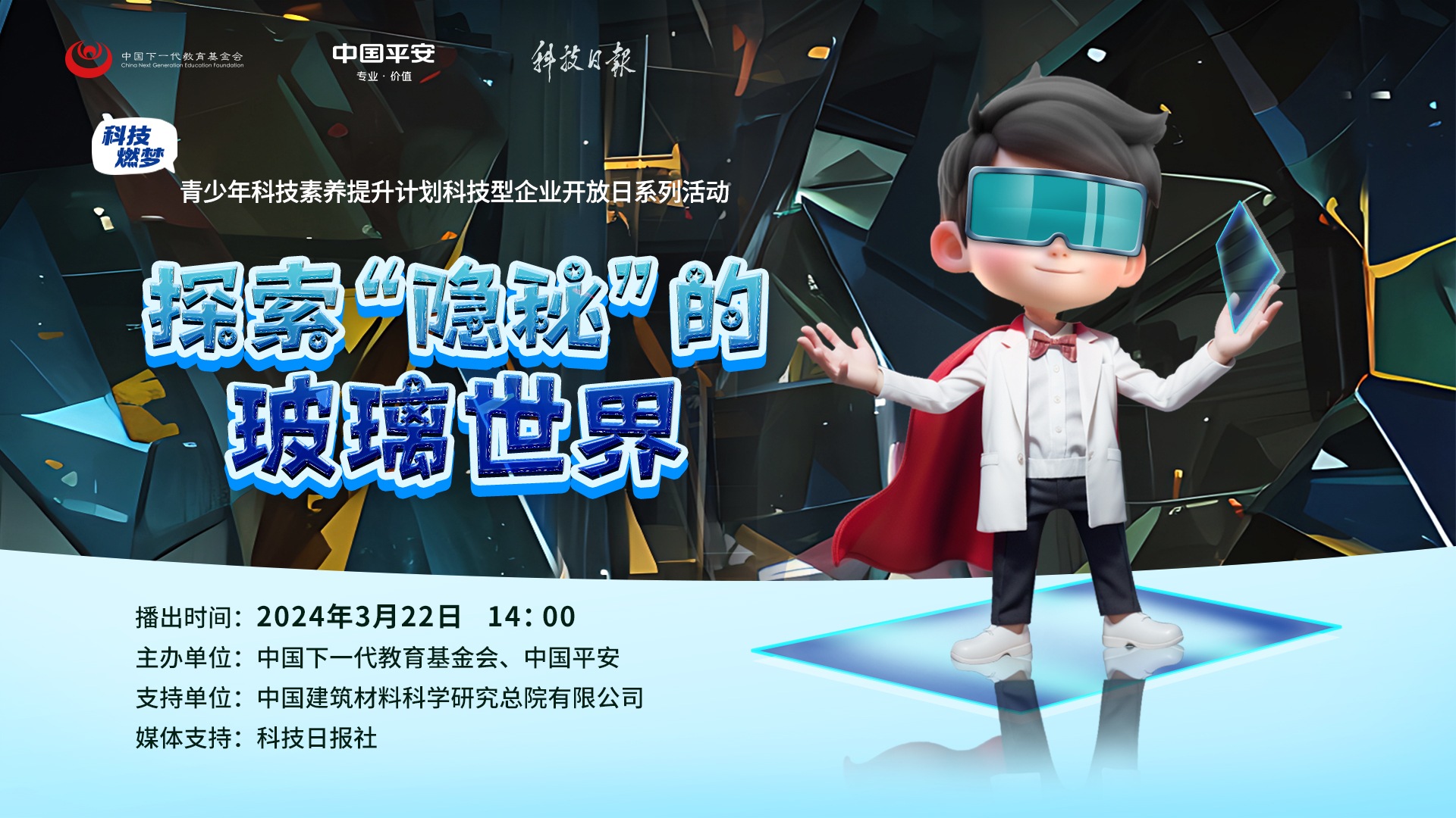 玻璃,是我们日常生活中常见且应用非常广泛的一种材料,如外墙、窗户、杯子、灯饰……但玻璃的应用远不止于此。2024年3月22日14时,由中国下一代教育基金会与中国平安共同主办、科技日报社媒体支持的青少年科技素养提升计划“科技燃梦·科技型企业开放日”主题直播课,将带领大家走进中国建材总院,了解玻璃在高科技领域的隐秘妙用!