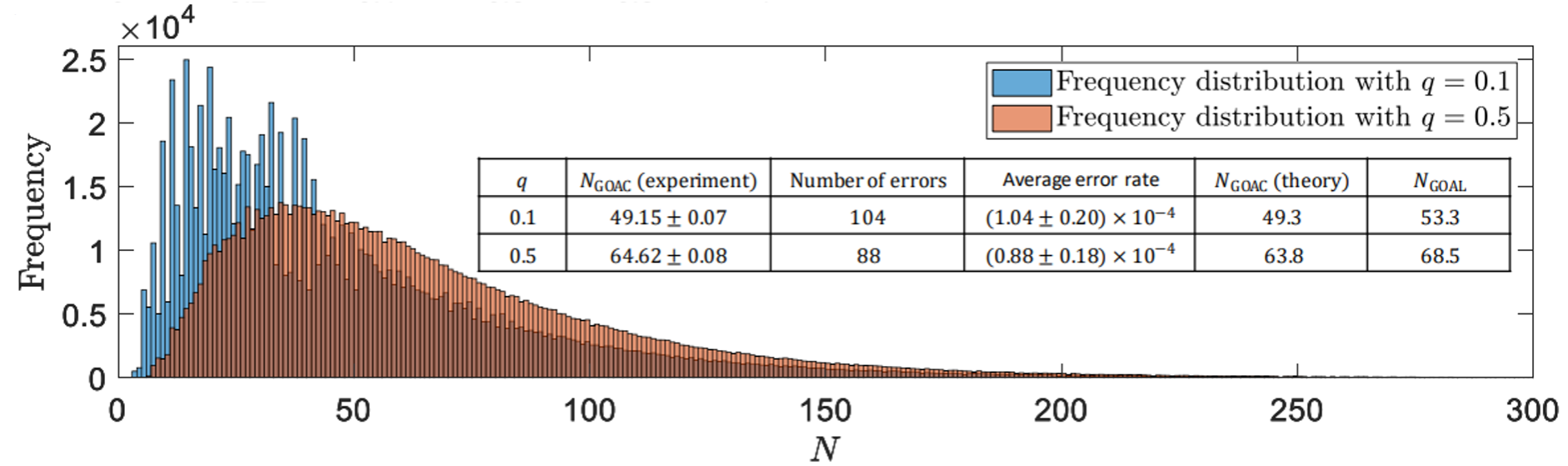 针对上述局限性,研究组首先提出全局最优自适应策略,既充分利用了测量过程得到的信息,也将局域测量拓展到集体测量。并基于测量轮次平移对称性,给出了该自适应策略的快速收敛迭代算法。限制在局域测量时,平均消耗量子态拷贝数比国际当前最好方法节省16.6个拷贝,称为局域界限。在研究组前期发展的固定两拷贝集体测量技术基础上,进一步发展了自适应两拷贝集体测量技术。实验上实现了基于自适应量子集体测量技术的全局最优自适应量子态分辨策略。在错误率0.01%要求下,分辨二维量子混态消耗的拷贝数显著打破了局域界限,节省了3.9个拷贝。