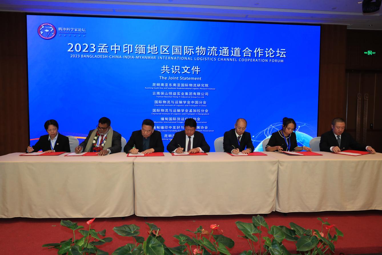 2023年10月,2023腾冲科学家论坛·孟中印缅地区国际物流通道合作论坛举办,围绕“推进孟中印缅地区国际物流通道运营联通”“孟中印缅地区交通物流数字化发展与应用”等话题,来自中国、缅甸、孟加拉国、印度的院士、专家学者、企业家代表交流协商,签订了《云南保山恒益实业集团有限公司与云南大学民族学与社会学学院、孟加拉国南北大学政治学与社会学系中国与南亚社会文化研究中心关于孟中印缅地区国际物流通道项目建设研究合作意向书》等协议和备忘录,并达成了诸多共识。
