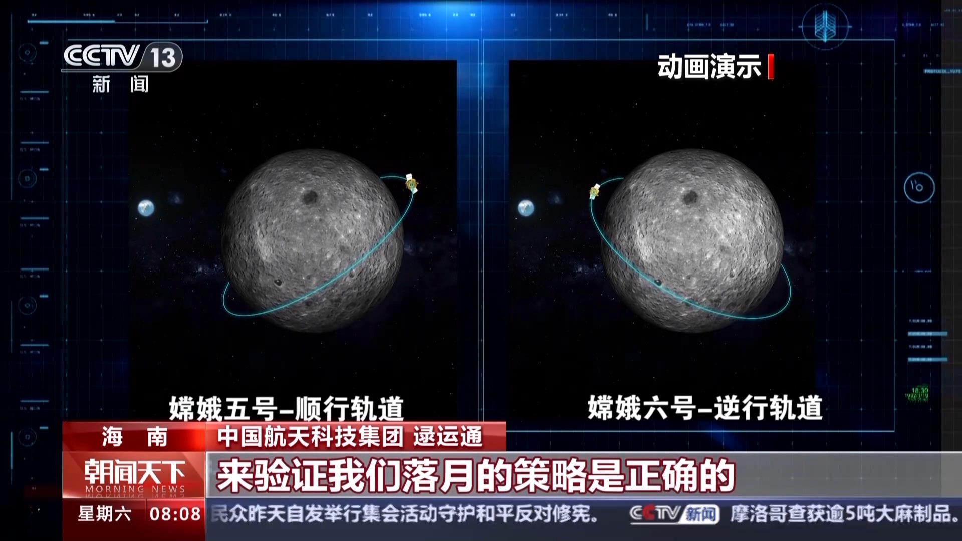 中国航天科技集团 逯运通:嫦娥六号它的轨道设计最主要的一个特点就是使用了逆行环月的轨道,更适用于我们月球背面采样返回的任务。我们会做很多设计上的仿真,来验证我们落月的策略是正确的。