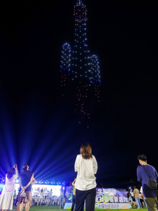 今年科技活动月启动仪式首次以“文艺汇演”形式开展。当晚,数百架无人机编队不时变换阵形,南繁种业、深海科技、航天科技、海南省科技活动月LOGO图案,“儋当有为昂洋奋进”“为海南科技贡献儋洋力量”等文字和图案依次展现在夜空中。在夜幕的衬托下,无人机在空中翩翩起舞,为这座千年古郡注入了现代科技的魅力。