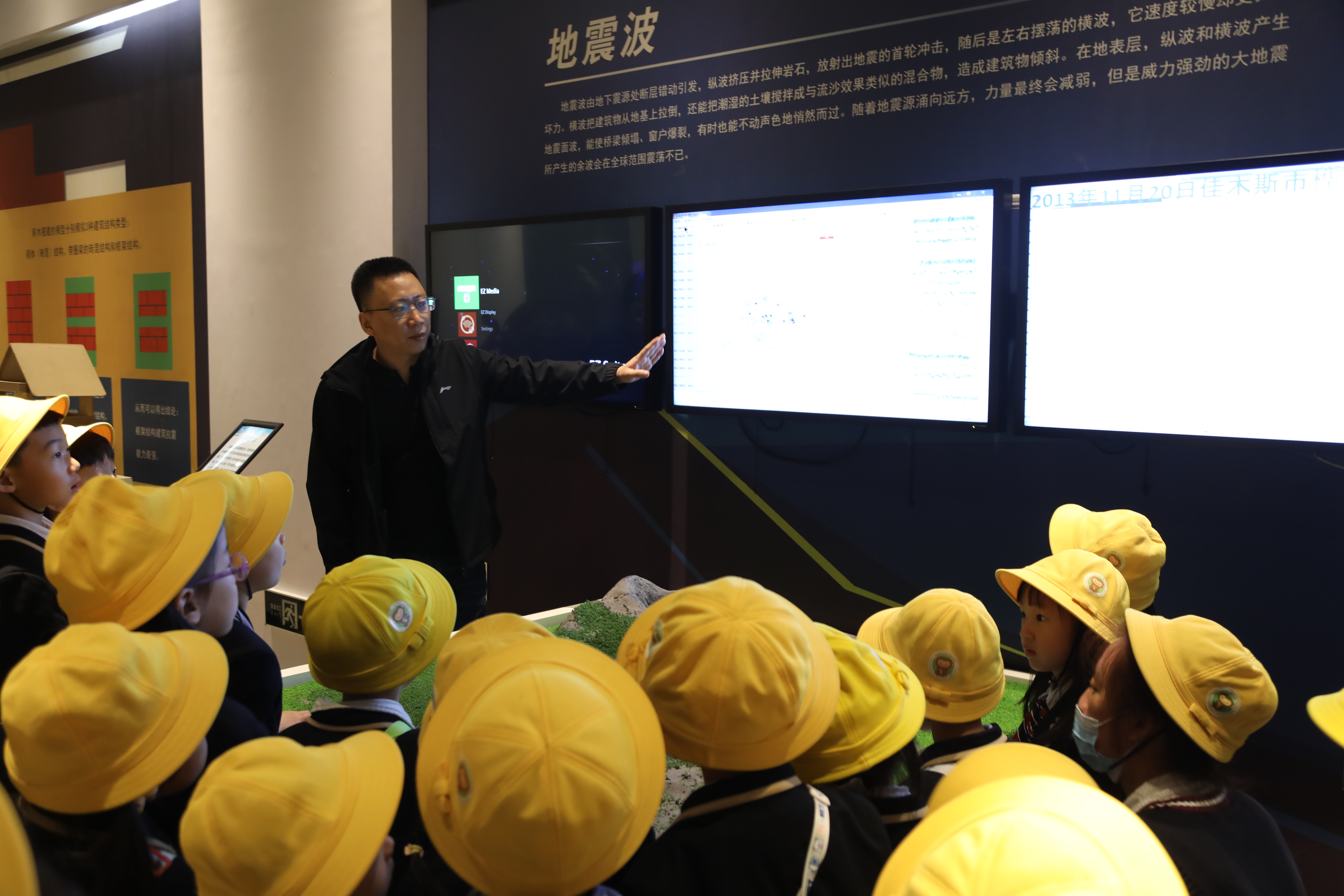 在科普馆,公众在讲解员的带领下学习防震减灾知识,互动体验科普展项。通过防震减灾科学常识问答检验学习成果,赢取“地震科普之星”徽章。