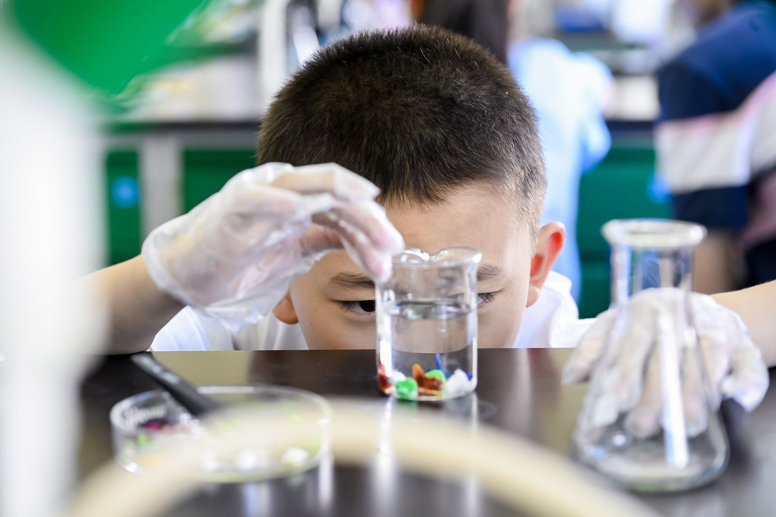 活动中,孩子们感受到了一代代科研人员的钢铁脊梁精神,看到了最新的科技成果和前沿技术——超轻质泡沫铝合金、磁致伸缩共振音响、复兴号高铁刹车片……科学的种子在他们心中悄悄萌芽。