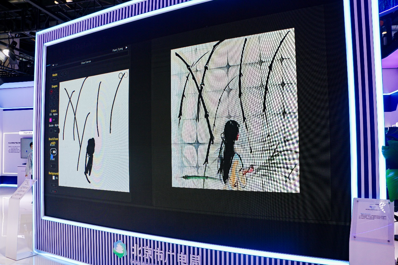中国传媒大学DigiLab实验室集中展示了国内首部水墨风格AIGC动画短片《龙门》、AIGC创意短片《大道同行》、首个AIGC 实时高清水墨转绘技术三项成果。