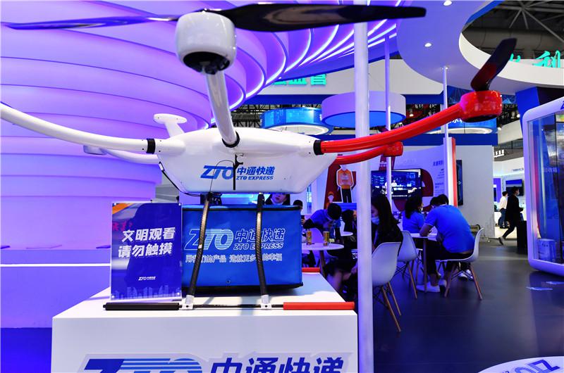 10月14日拍摄的数字中国建设成果展览会现场展示的快递无人机。
