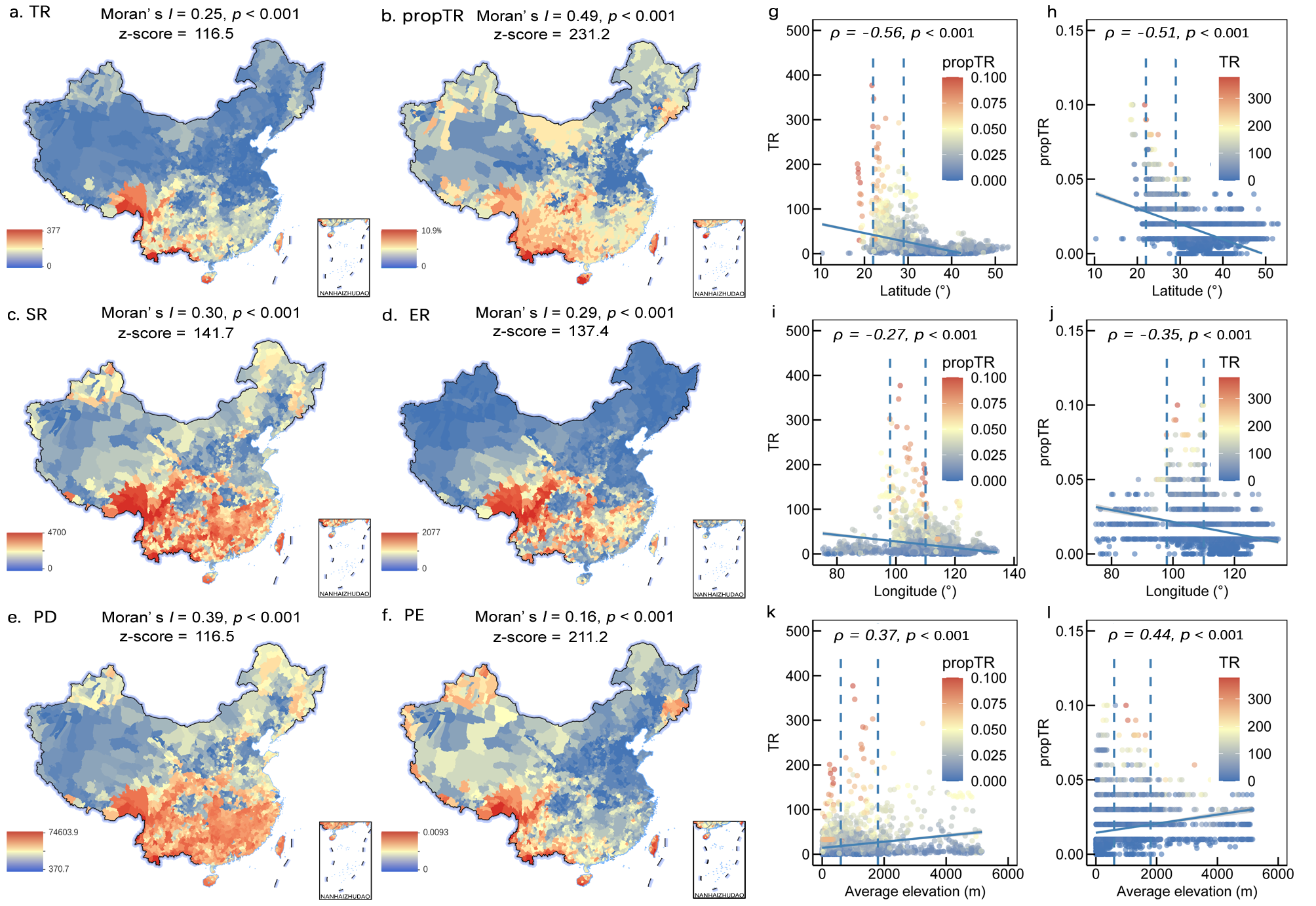 然而,在地形和气候差异极大的国家,物种灭绝风险往往受到范围或尺度效应的复杂影响,这大大限制了相关结论的可靠性。“我国地形复杂、气候多样,是世界上生物多样性最为丰富的国家之一,针对我国物种灭绝风险开展大尺度的综合研究,对于准确预测生物多样性变化趋势、科学制定针对性保护策略具有重要意义。”论文第一作者、中国科学院植物所工程师赵莉娜说。