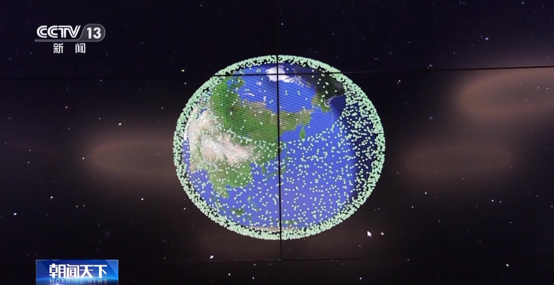 记者来到了北京航天驭星科技有限公司,在测控大厅的屏幕上可以看到基于开源信息汇总的太空中所有在轨卫星的轨道信息。在近地轨道上,运行最多的就是美国的星链卫星。