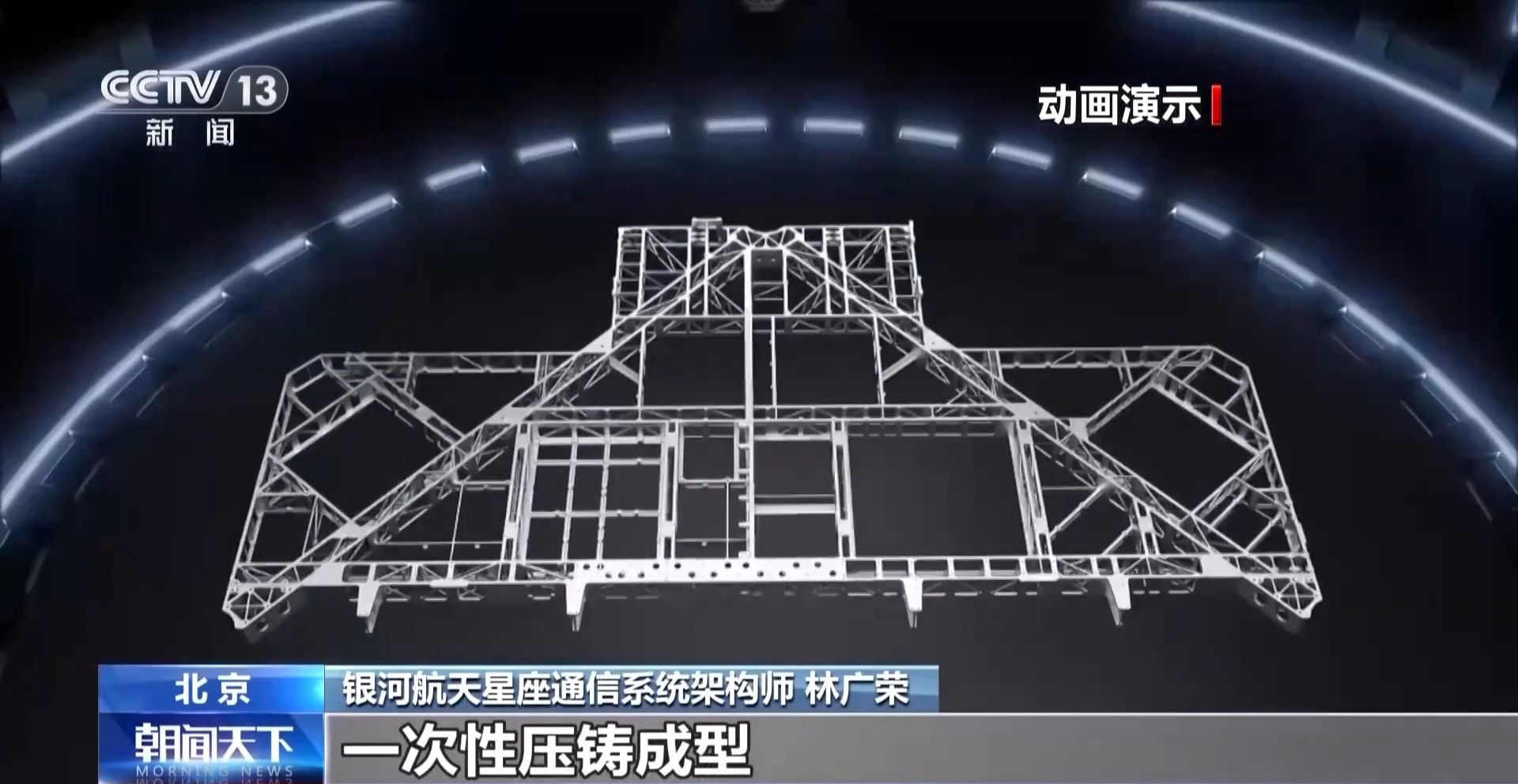 银河航天星座通信系统架构师 林广荣:但像这种,相当于可以利用金属一次性压铸成型,在火箭发射的时候也可以多星堆叠,能够降低它的发射成本。