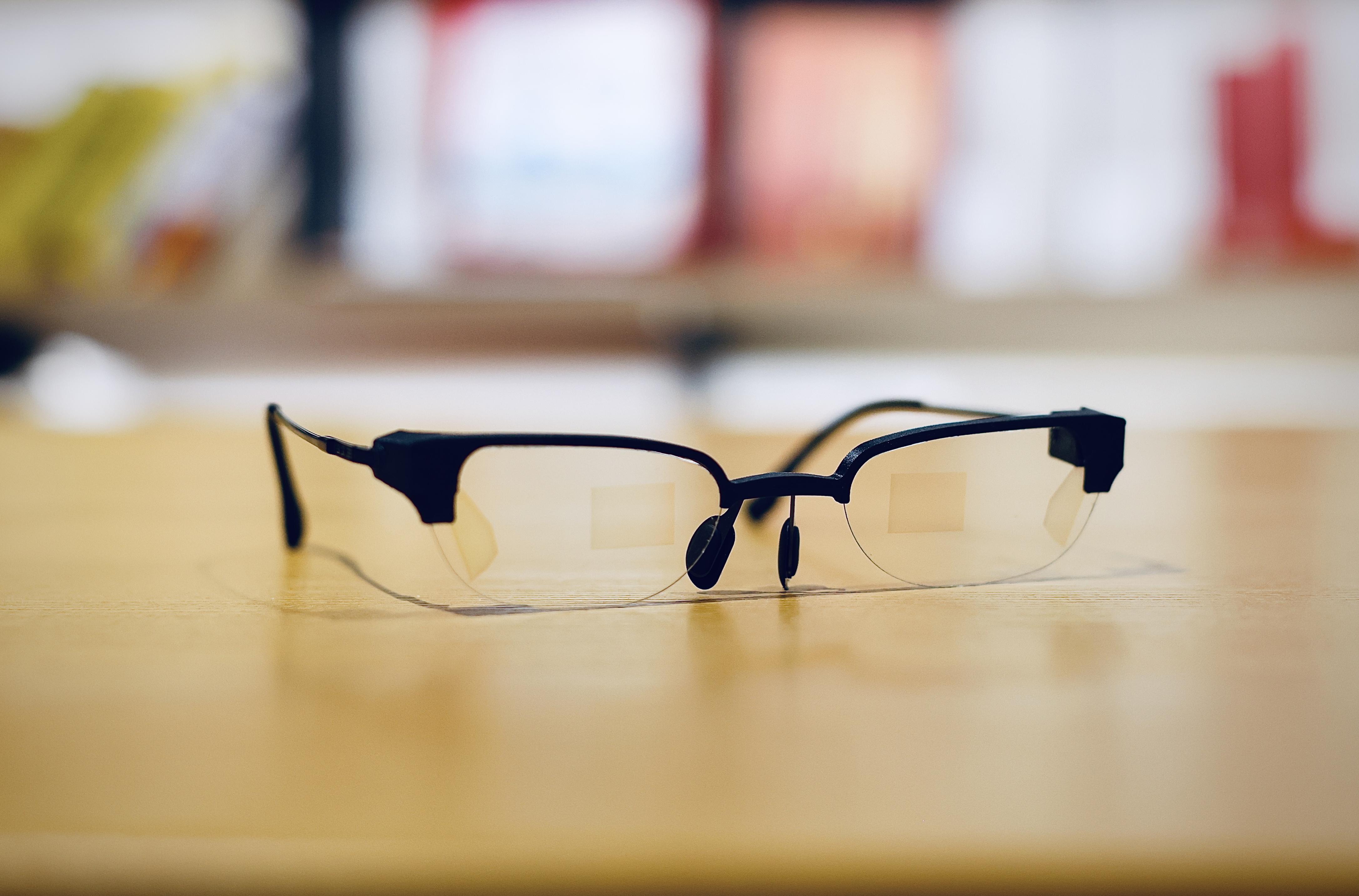 双目镜片重量仅5.4克、厚度仅0.55毫米的AR眼镜。(西湖大学供图)