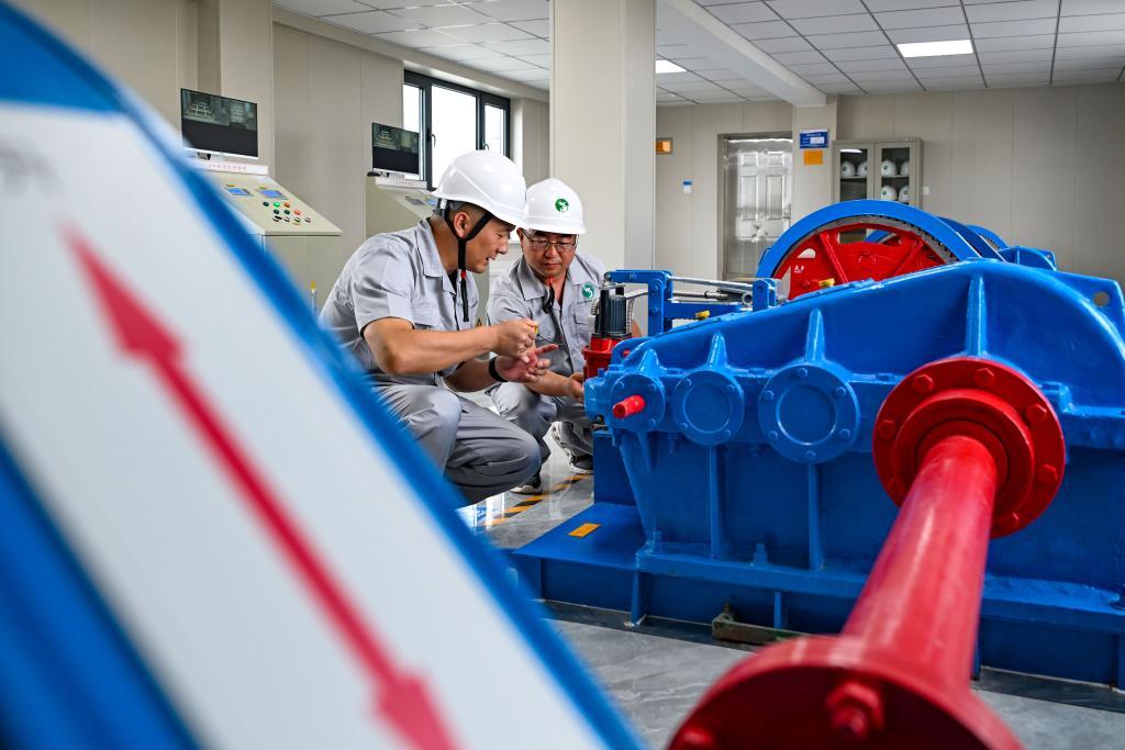 8月11日,工作人员在输水前在大西海子水库闸房检查闸门启闭机。新华社记者 陈朔 摄
